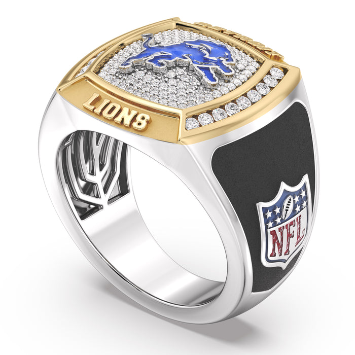 Personalize with your Custom Name and Number on this 1/2 CTTW Detroit Lions Championship Ring in 10K Yellow Gold and Sterling Silver