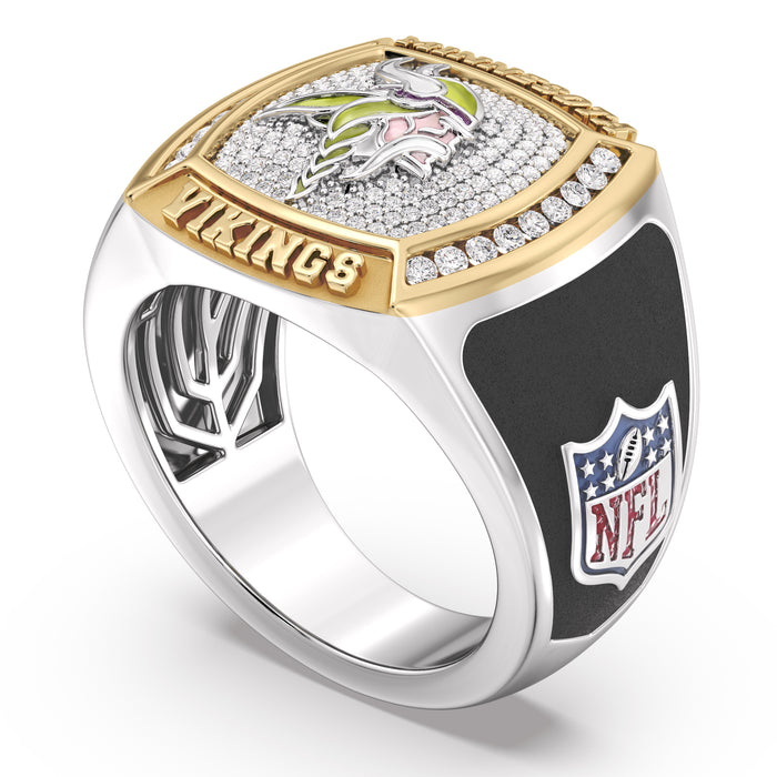 Personalize with your Custom Name and Number on this 1/2 CTTW Minnesota Vikings Championship Ring in 10K Yellow Gold and Sterling Silver