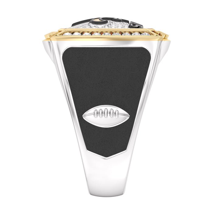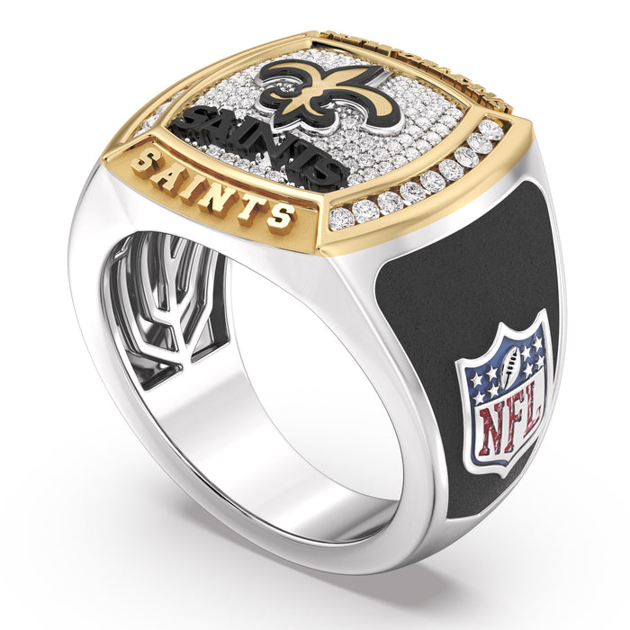 Personalize with your Custom Name and Number on this 1/2 CTTW New Orleans Saints Championship Ring in 10K Yellow Gold and Sterling Silver