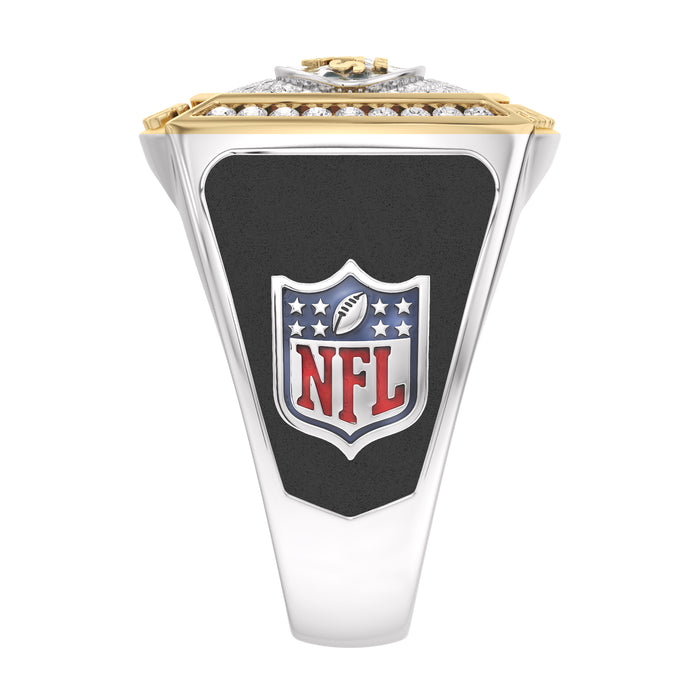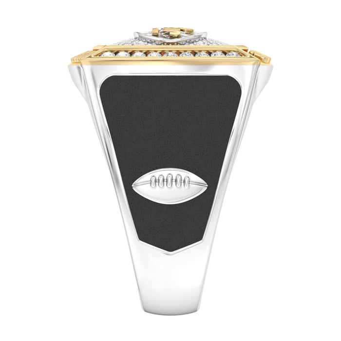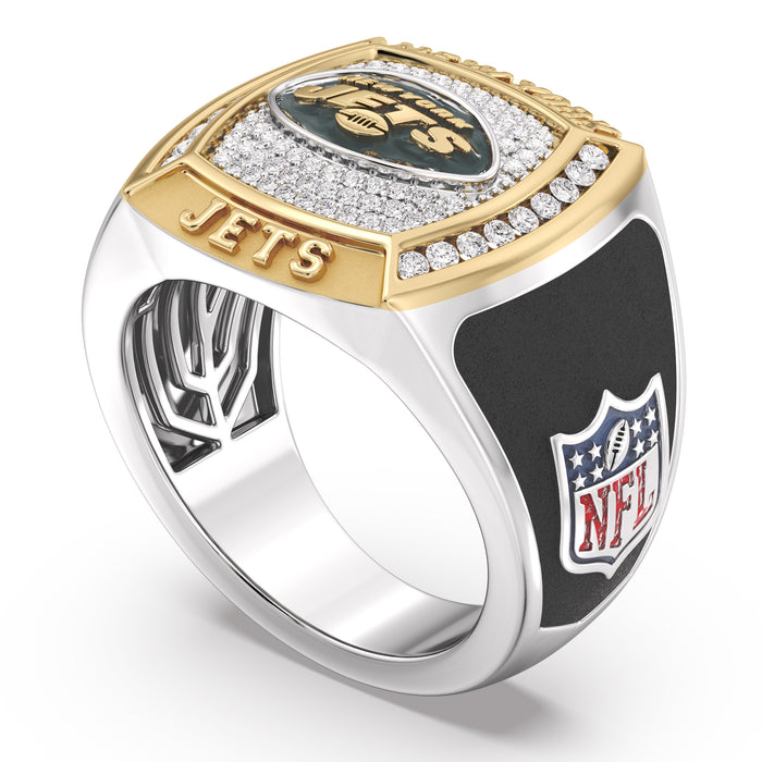 Personalize with your Custom Name and Number on this 1/2 CTTW New York Jets Championship Ring in 10K Yellow Gold and Sterling Silver