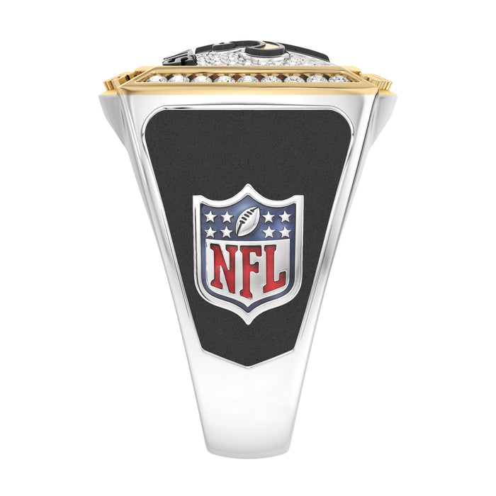 Personalize with your Custom Name and Number on this 1/2 CTTW New Orleans Saints Championship Ring in 10K Yellow Gold and Sterling Silver